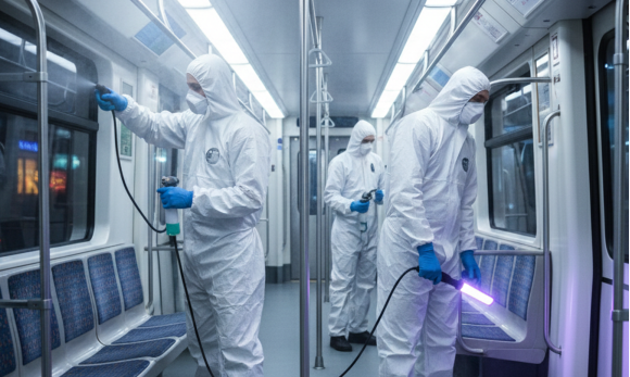 Высокая плотность пассажиропотока делает контактные зоны на вокзалах, платформах и в вагонах критическими для переноса микробной контаминации. Поручни, турникеты, валидаторы, кнопки дверей и санитарные зоны собирают потожировые следы, дорожную и тормозную пыль, остатки напитков и аэрозольные капли. Простая мойка не решает задачу «дезинфекция поверхностей...