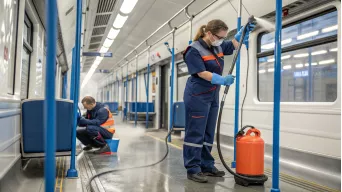 Уход за полами и поручнями вагонов метро